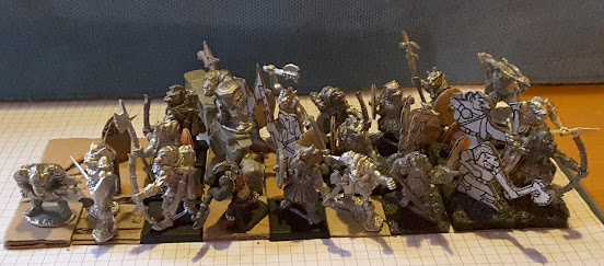 One difficulty in unifying the 3 sets and "normalizing" them to make them a playable unit of WHFB or T9A are the bases: while the Citadel gnolls have the tab to be inserted into a classic plastic base, the other two groups have integrated metal bases - among other things of different size and thickness! Therefore, it will be necessary to insert them in inverted bases to make them similar to the others. Unfortunately for now I have only managed to get two, but I hope that the others will not be long in coming.